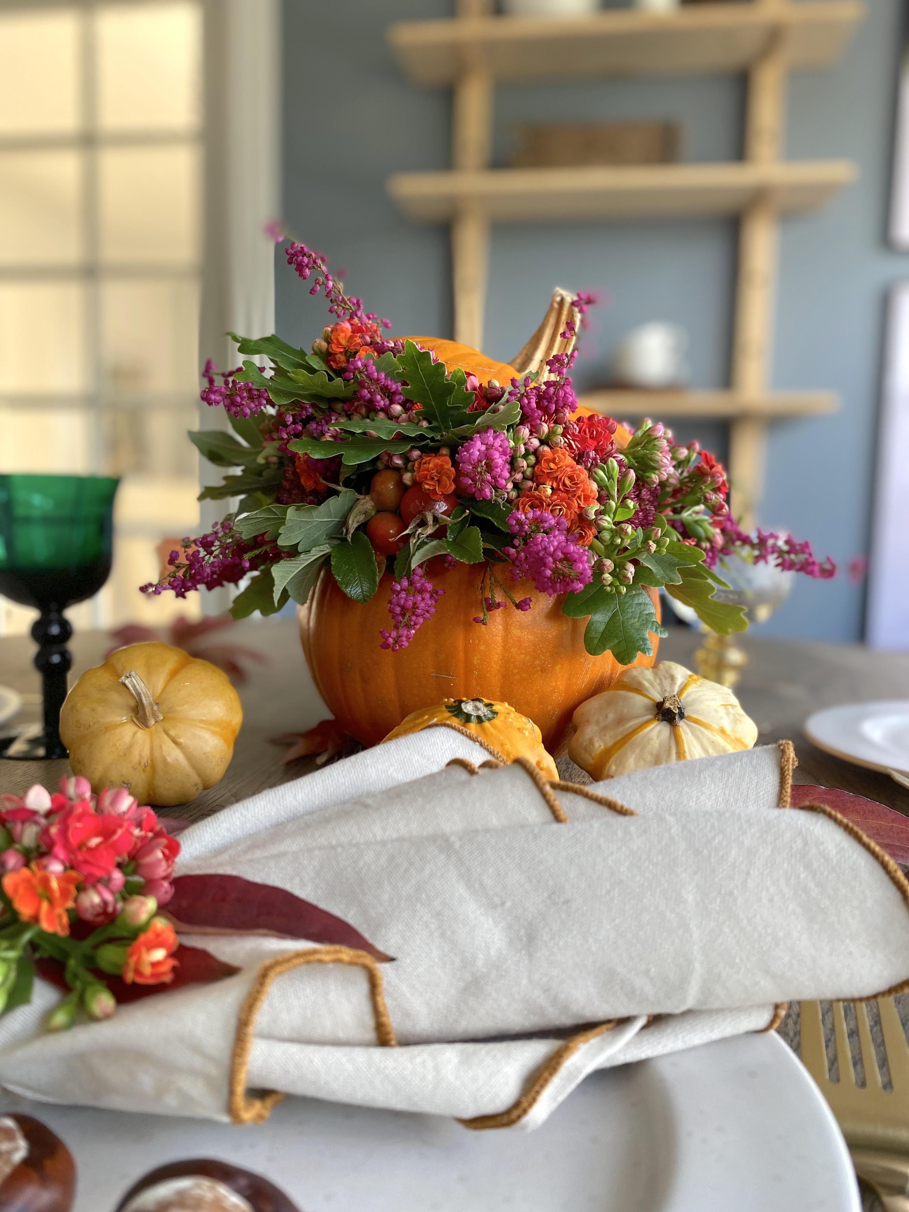 Hvis du er til et lidt større ferieprojekt, kan du også lave en flot græskardekoration med smukke blomster og grønt fra haven, som kan pynte i hjemmet eller ude foran døren. Eller måske endda på middagsbordet, hvis du får gæster på besøg i efterårsferien og vil gøre lidt ekstra ud af borddækningen. Følg guiden her.