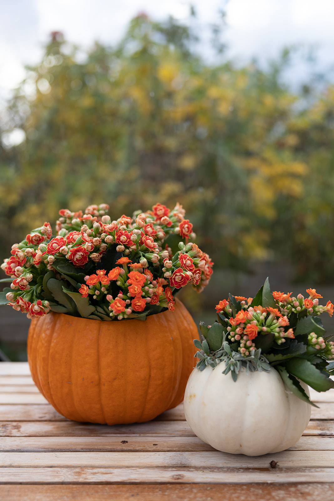 Skal du holde årets Halloween fest? Så dæk et elegant Halloween bord i mørke nuancer, og dekorer det med græskar i forskellige størrelser, levende lys og fine kalanchoe. Et sådant bord emmer af (u)hygge og danner den helt rigtige setting til årets Halloween, hvor gys og gru men også fest er omdrejningspunktet.