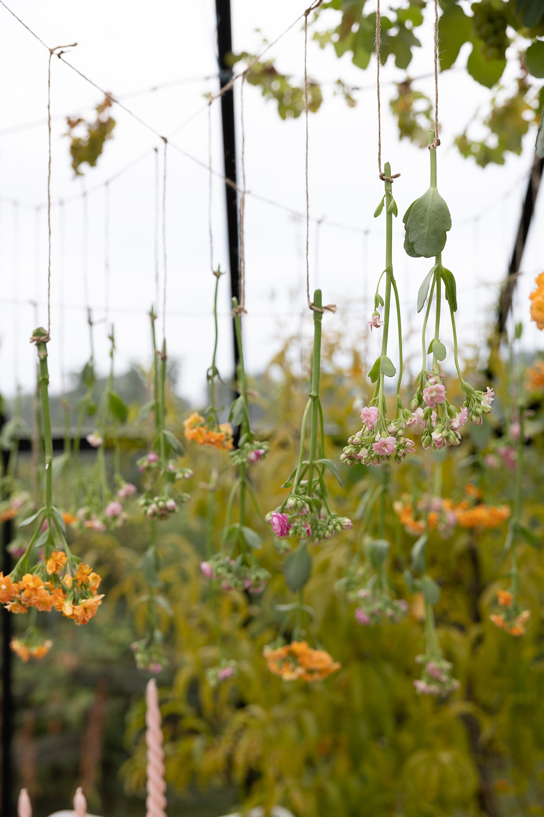 We love being creative with our flowers and providing inspiration and great ideas for how you can decorate and create magical experiences with Queen® Flowers. This year, the starry sky has replaced a lovely floral canopy. Our lovely Leonora Grigat has adorned her conservatory with Kalanchoe flowers in beautiful late summer colours of orange, pink, and light pink. Even if the weather outside isn't cooperating, you can sit warmly and comfortably in the beautifully decorated conservatory. The flowers from Queen® Flowers last a long time, even without water, so you can prepare this type of decoration well in advance before your guests arrive.