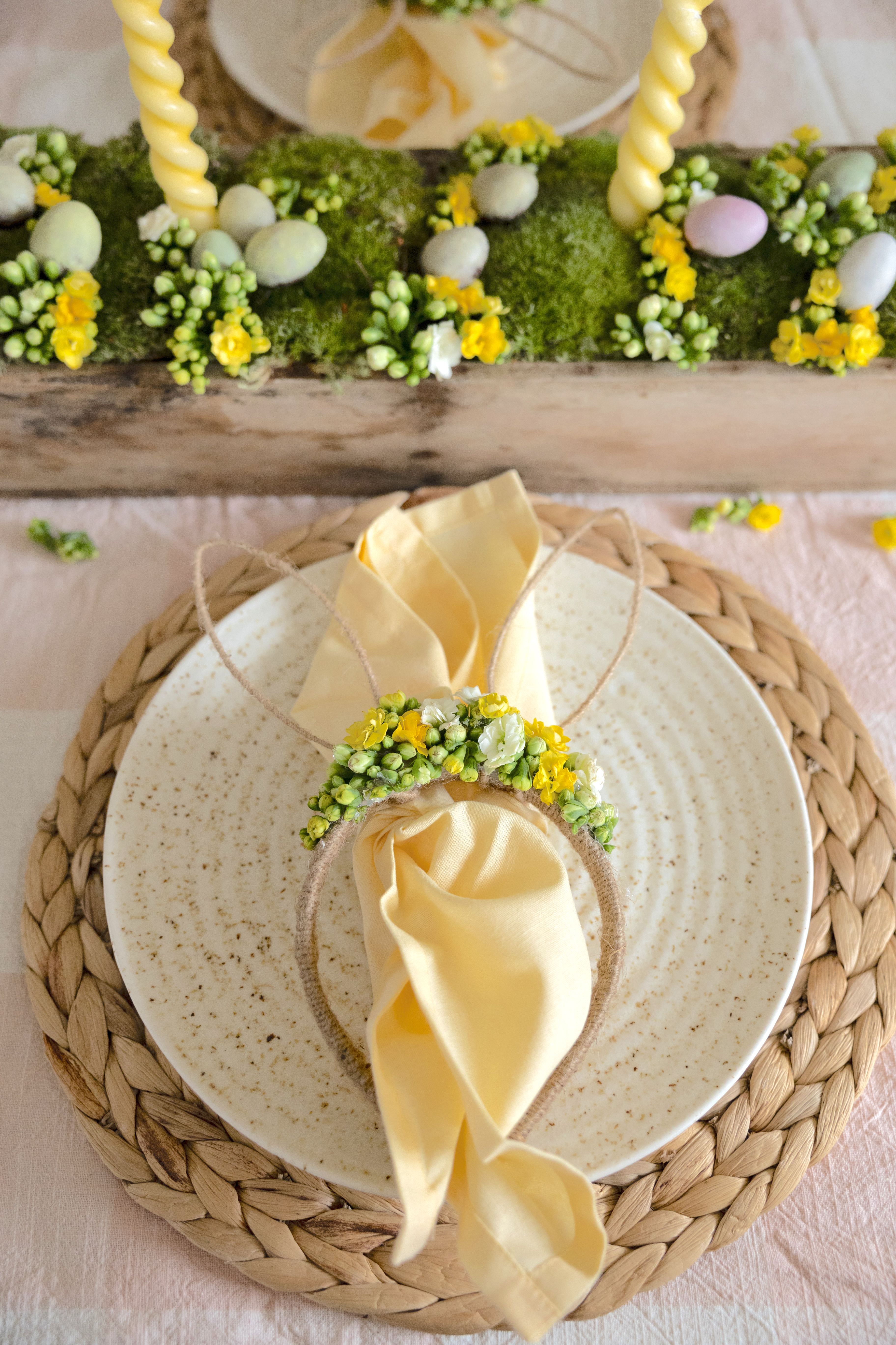 Mangler du et hyggeligt, nemt og enkelt projekt i påskeferien? Denne påskekrans er en oplagt mulighed for at imponere dine gæster, eller som et sjovt kreaprojekt med familiens mindste. Med afskårne gule, hvide og rosa påskeblomster fra Queen® Flowers kan du skabe en særlig hyggelig påskestemning. Blomsternes lange holdbarhed gør desuden at kransen holder sig flot og kan klare sig flere dage uden at få vand.