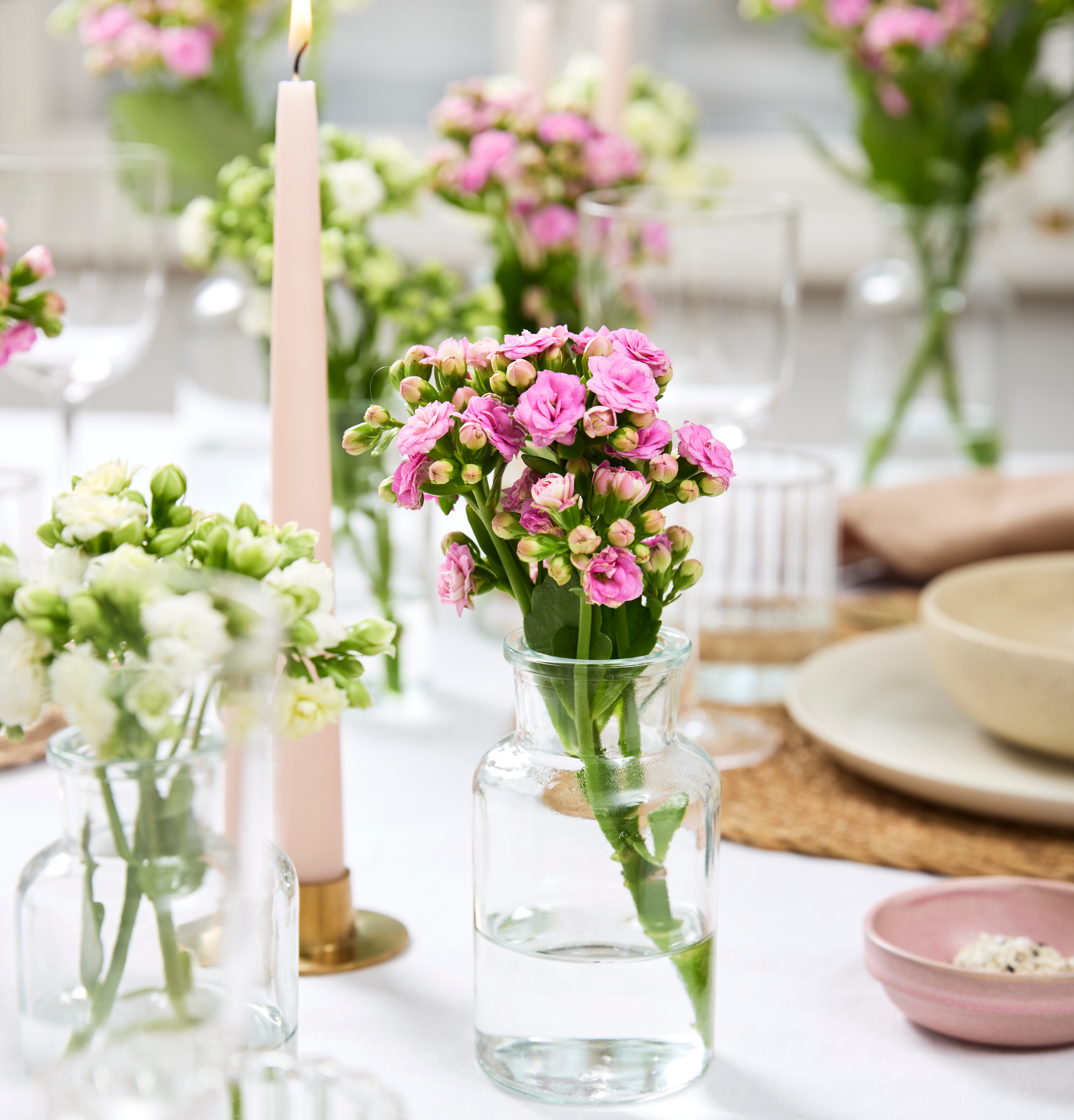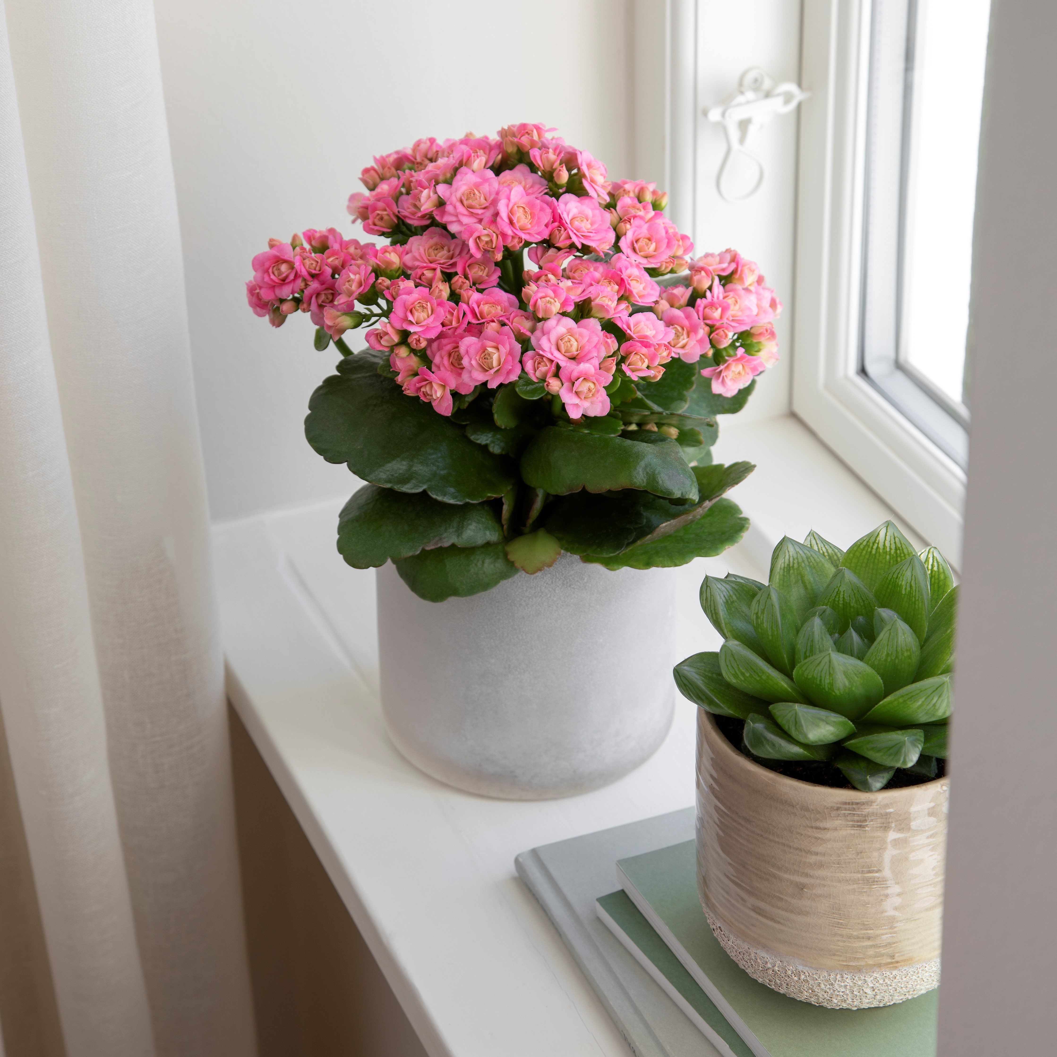 Vores smukke kalanchoe blomster kommer i et væld af fine forårsfarver såsom hvid, lyserød og gul, hvilket gør dem perfekt til årstiden. De mange forskellige størrelser og varianter gør, at de passer til alle hjemmets rum og overflader. Stil vores mini potteplanter i fin keramik i vindueskarmen eller på bogreolen, mens du kan placere en af vores smukke forårsbuketter på spisebordet. Du kan også lave en sprudlende og fyldig forårsdekoration med blomster ved at samle flere af vores potteplanter i en skål. Placér den lille frodige oase i din entre eller på badeværelset for at give disse rum et dejligt forårsstrejf. Vores blomster tåler netop at blive placeret overalt i hjemmet, og der vil de blomstre i ugevis. Det er lige til at komme i forårshumør af!
