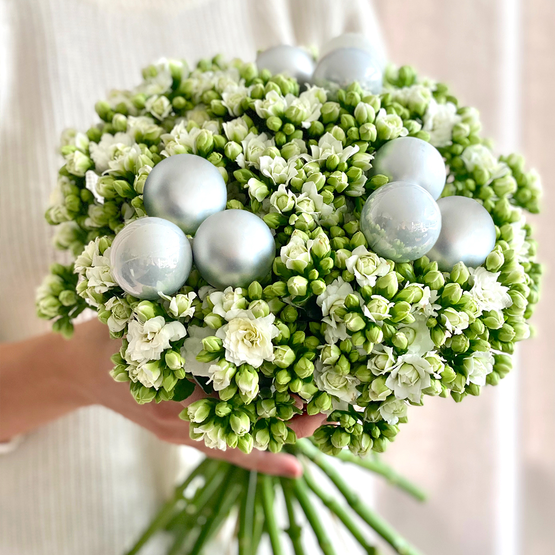Vores smukke luksusbuket Snowy Christmas består af 12 stilke kalanchoe i farven hvid. Den er håndbundet, så du kan sætte den direkte i vasen derhjemme. Vi garanterer, at den her vil blomstre smukt i mindst 3 uger. Blomsternes farvenuancer kan variere en smule i forhold til billedet.