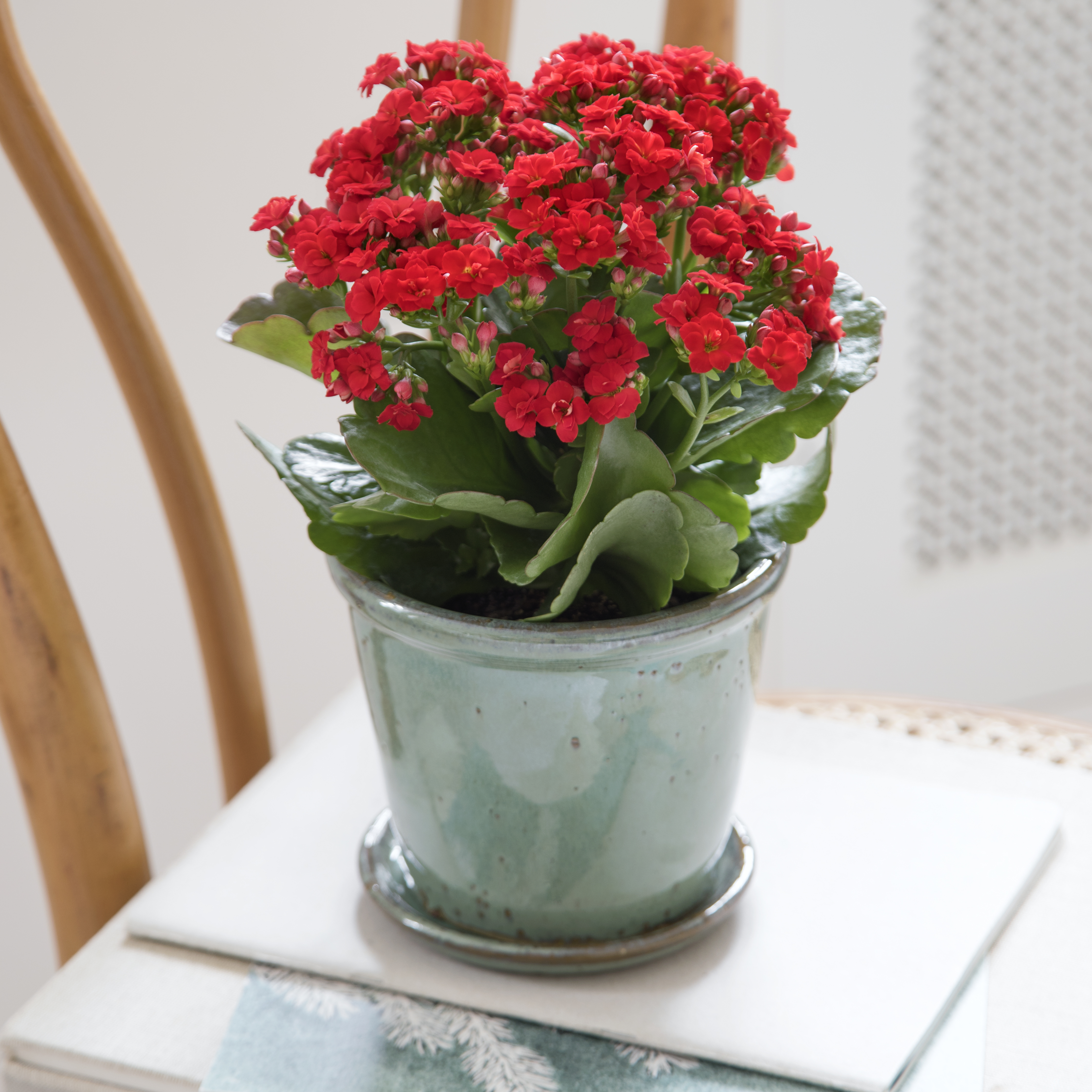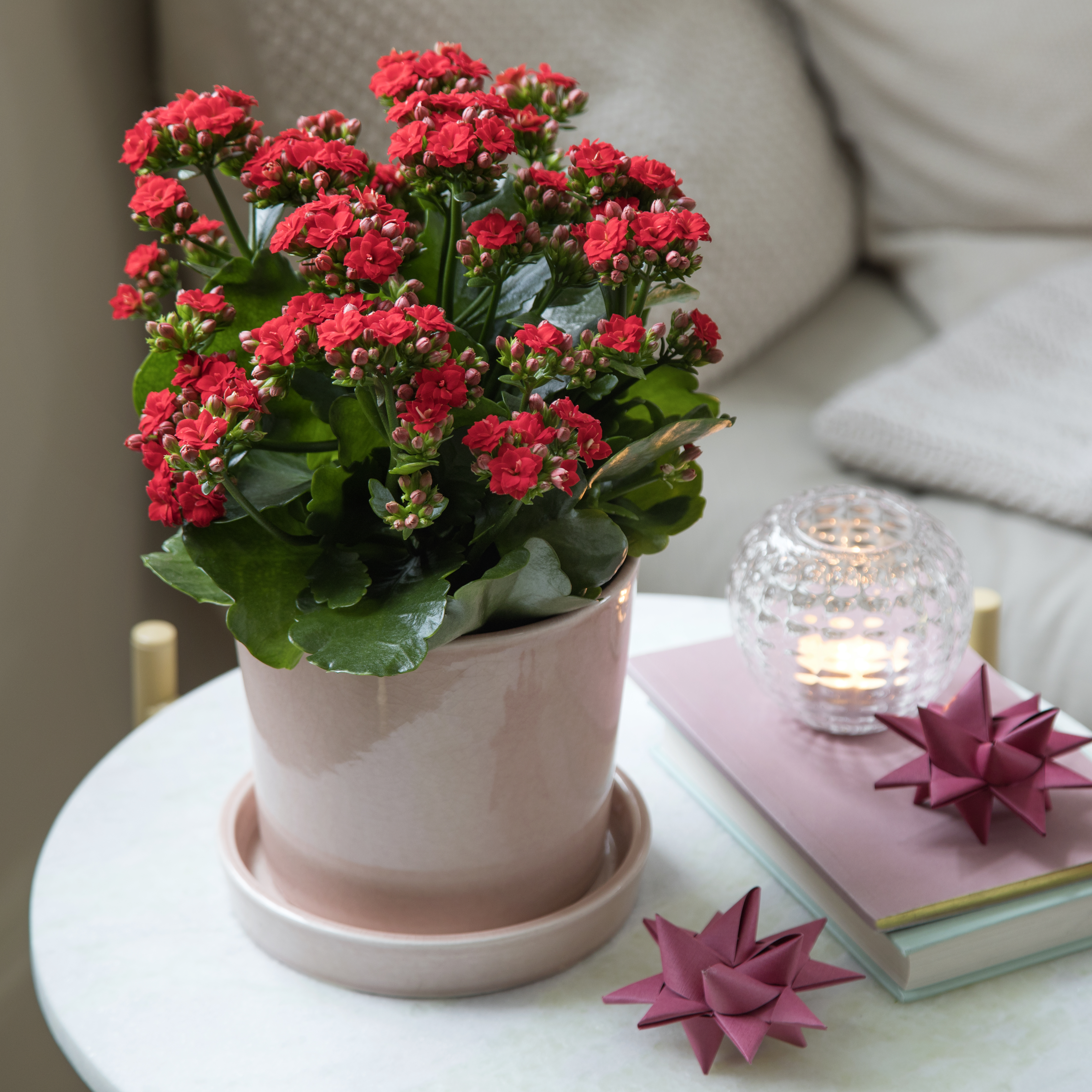 Vores flotte 10,5 cm dobbeltblomstrende kalanchoepotteplanter i rød leveres i 8 stk. Det er en langtidsholdbar indendørsplante af medium størrelse, der blomstrer smukt i mindst 6 uger. Den er nem at passe, kan placeres alle steder i hjemmet og tåler både sol og skygge. Planten er 24-26 cm i højden, og potten er 10,5 cm i diameter. Potteskjuleren medfølger ikke planten.