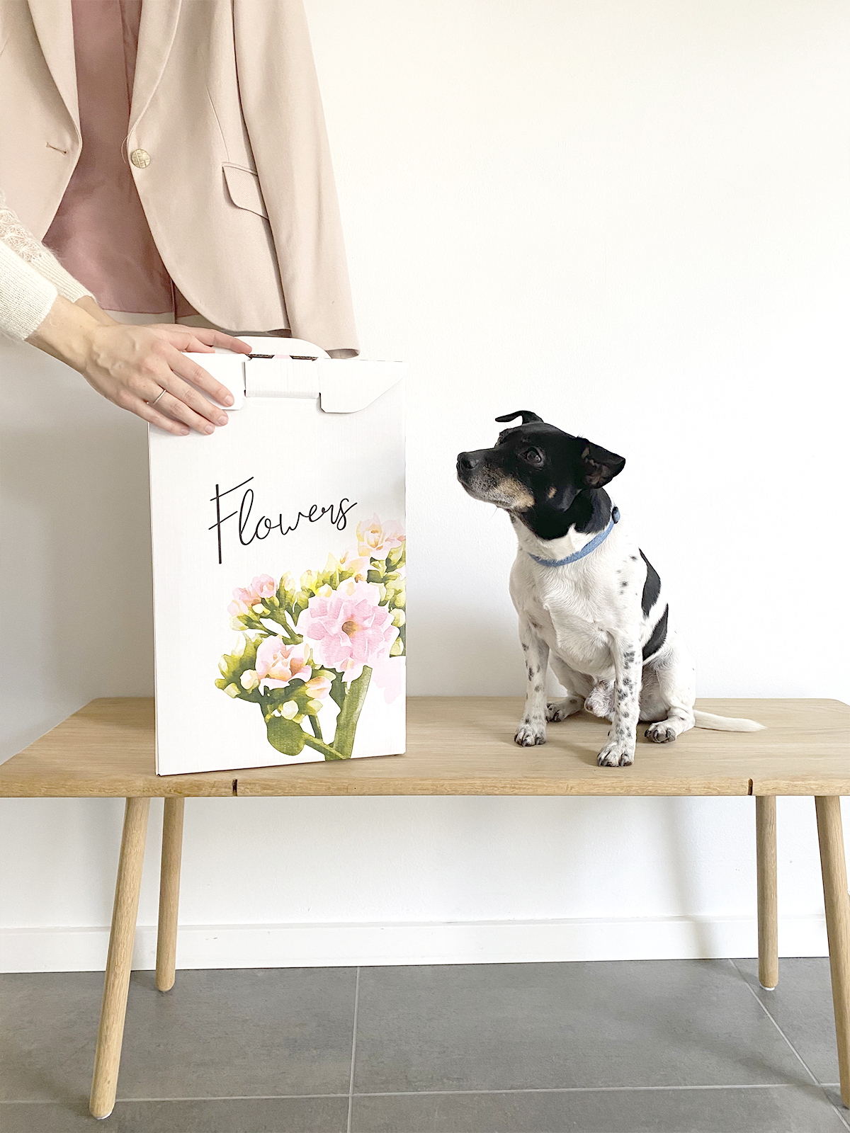 Our paper packaging and webshop box with matching bouquet collar are made from FSC-certified paper, so you can be certain that it comes from sustainably forested areas. As we wish to reduce unnecessary deforestation, recycle materials and reduce waste, we very much hope that you will sort this packaging with your cardboard and paper waste.