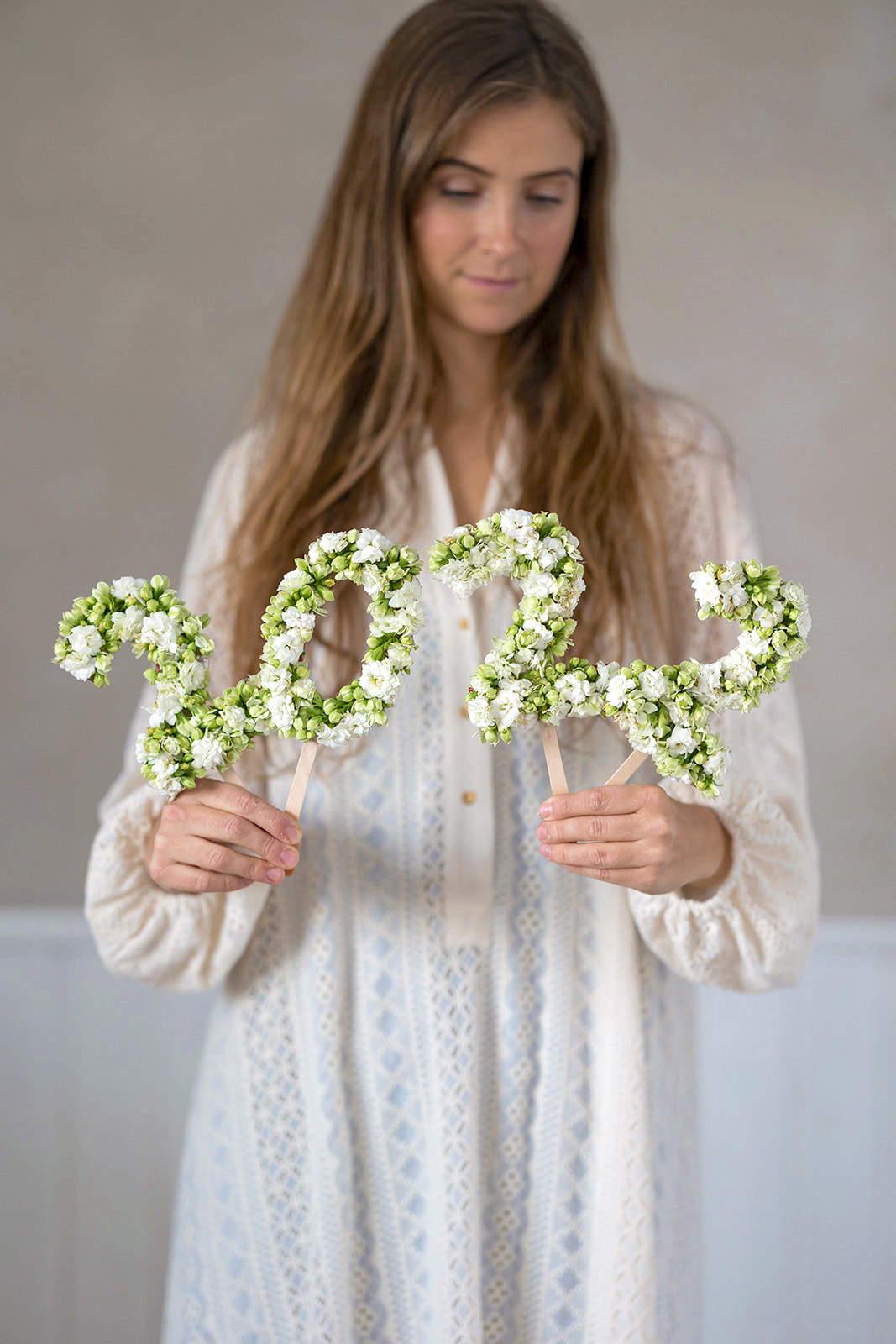 Anyone can buy the usual New Year's decorations, but can everyone create their own? Our Kalanchoe flowers are easy to work with and hold up well, even without water. They are the perfect floral choice when crafting beautiful New Year's decorations for your table setting. Below, you'll find a DIY video from which you can take inspiration. In the video, we've used our white flowers, but Queen® Flowers comes in a variety of versions and colours, allowing you to mix and match them in the colour combinations you find most stunning. Psst... This elegant table setting with numbers can also be used for birthdays or anniversaries. You can also experiment with making letters instead of numbers, suitable for occasions like birthdays, confirmations, christenings, or weddings.
