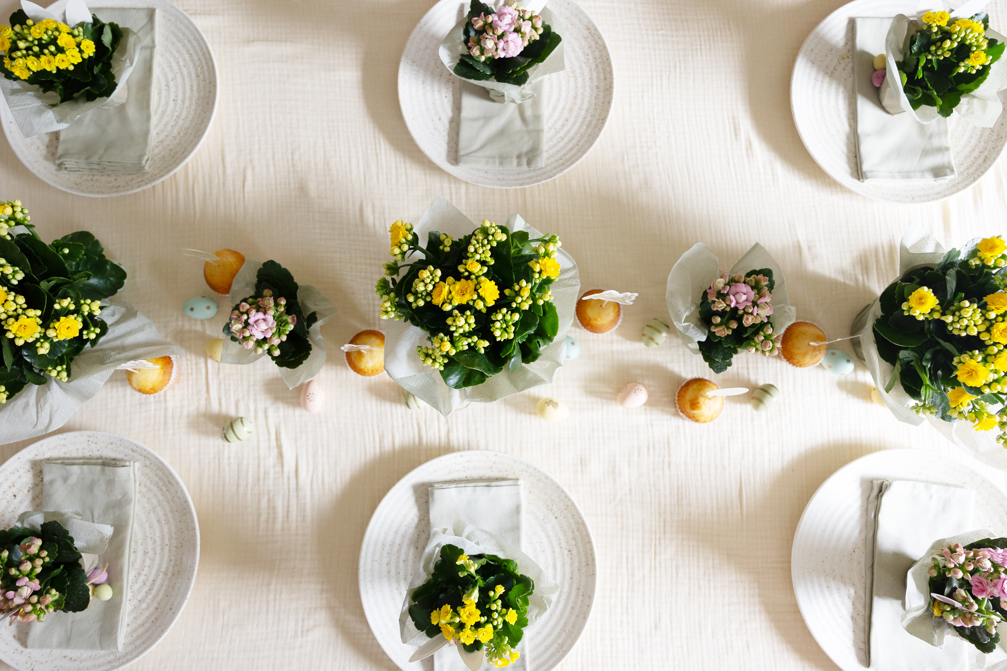 We’ve made a sweet DIY where we show how you can easily transform small potted plants into cute Easter eggs using pastel-colored napkins. Add small bunny ears on a skewer or toothpick, and suddenly you have the cutest little Easter bunnies to decorate your table.