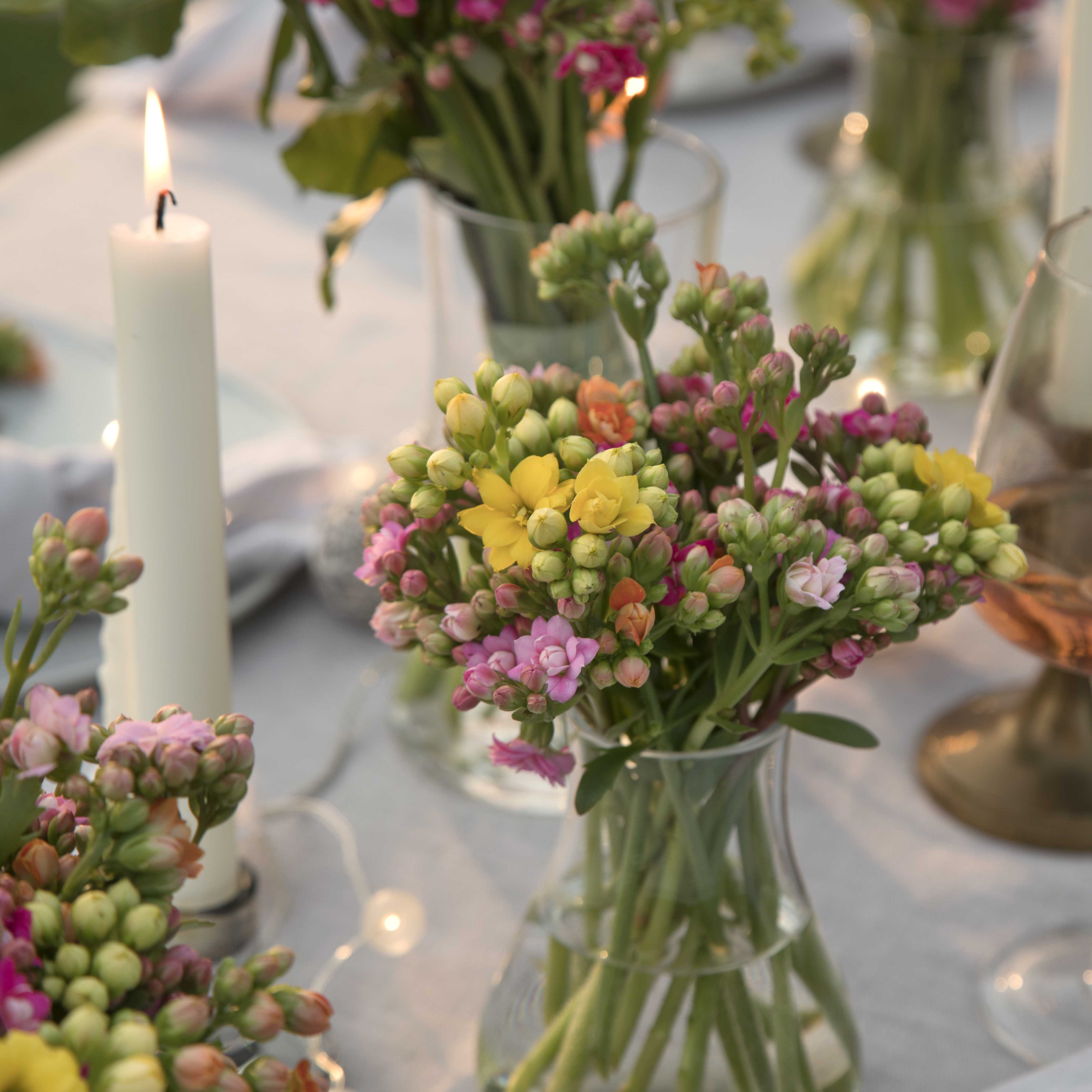 The sky’s the limit when it comes to setting a beautiful table with our flowers. You can decorate the table with stems in different vases, elegant potted plants in flowerpots or small table bouquets down the middle of the table. Some stems can also serve as plate decorations along with personalised place cards.